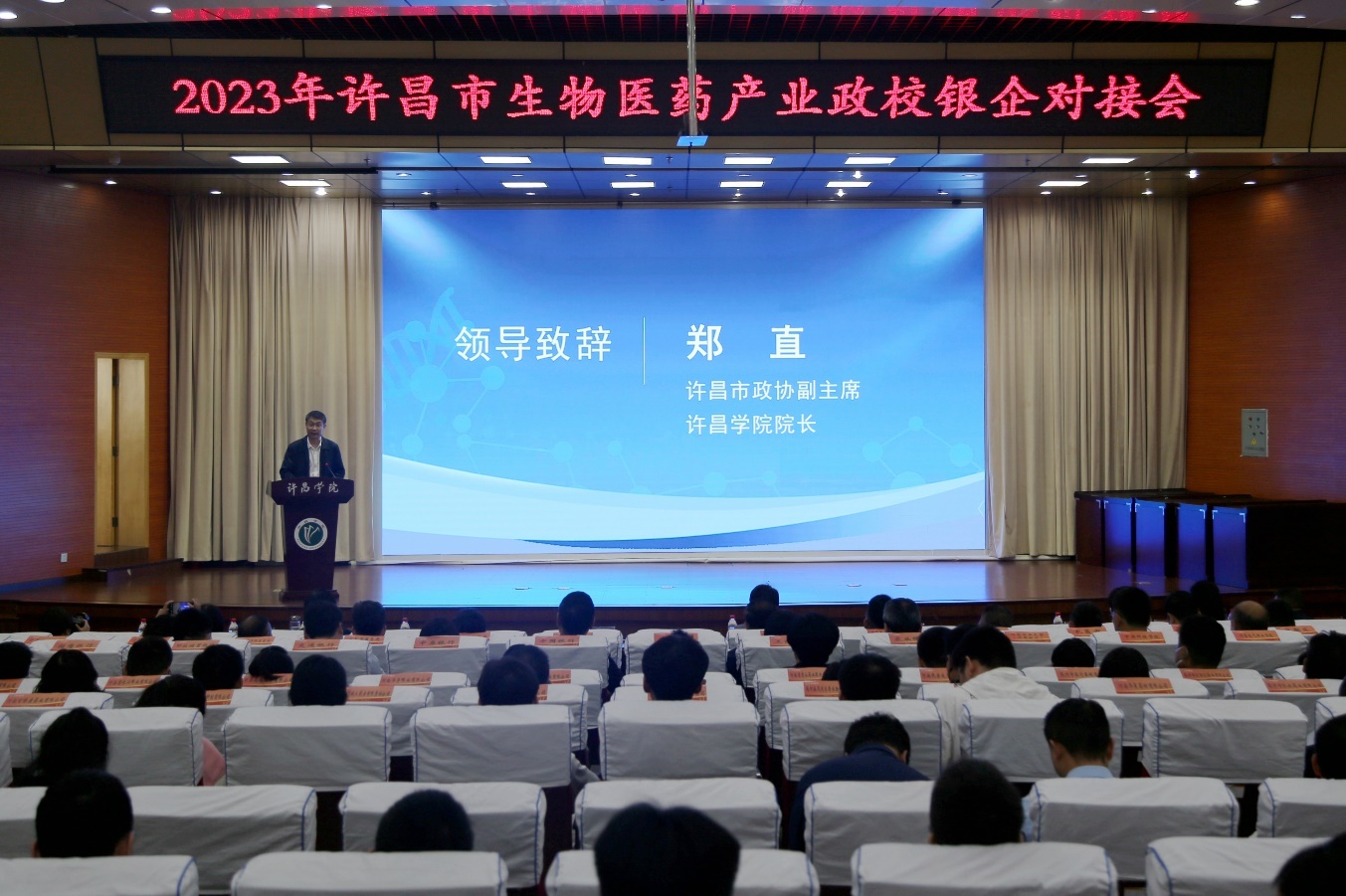 郑直在会上致辞,简要介绍了学校的基本情况和办学特色。他指出,近年来学校围绕许昌经济社会发展需要,精准定位、科学谋划、扎实推进校地合作工作,成果丰硕。今天的对接会将为全市医药行业与云顶国际平台app科技攻关、转化搭建重要的合作平台,期盼更多企业能与校内专家、团队联手合作,共克技术难关,让更多更好的项目在企业落地生根、开花结果。学校将持续发挥高校职能,做好科技创新服务,以更积极的姿态、更全面的服务,为许昌市共同富裕先行试验区建设贡献智慧和力量。
