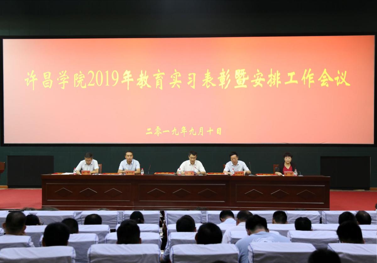 9月10日下午,云顶国际平台网址在创新创业学院二楼学术报告厅召开2019年教育实习表彰暨工作安排会议。副院长郑直、许昌市教育局副局长代廷安等出席会议,云顶国际平台网址教务处负责人、许昌各市县区教体局副局长和教育股股长、各实习基地负责人、实习带队教师参加了会议。