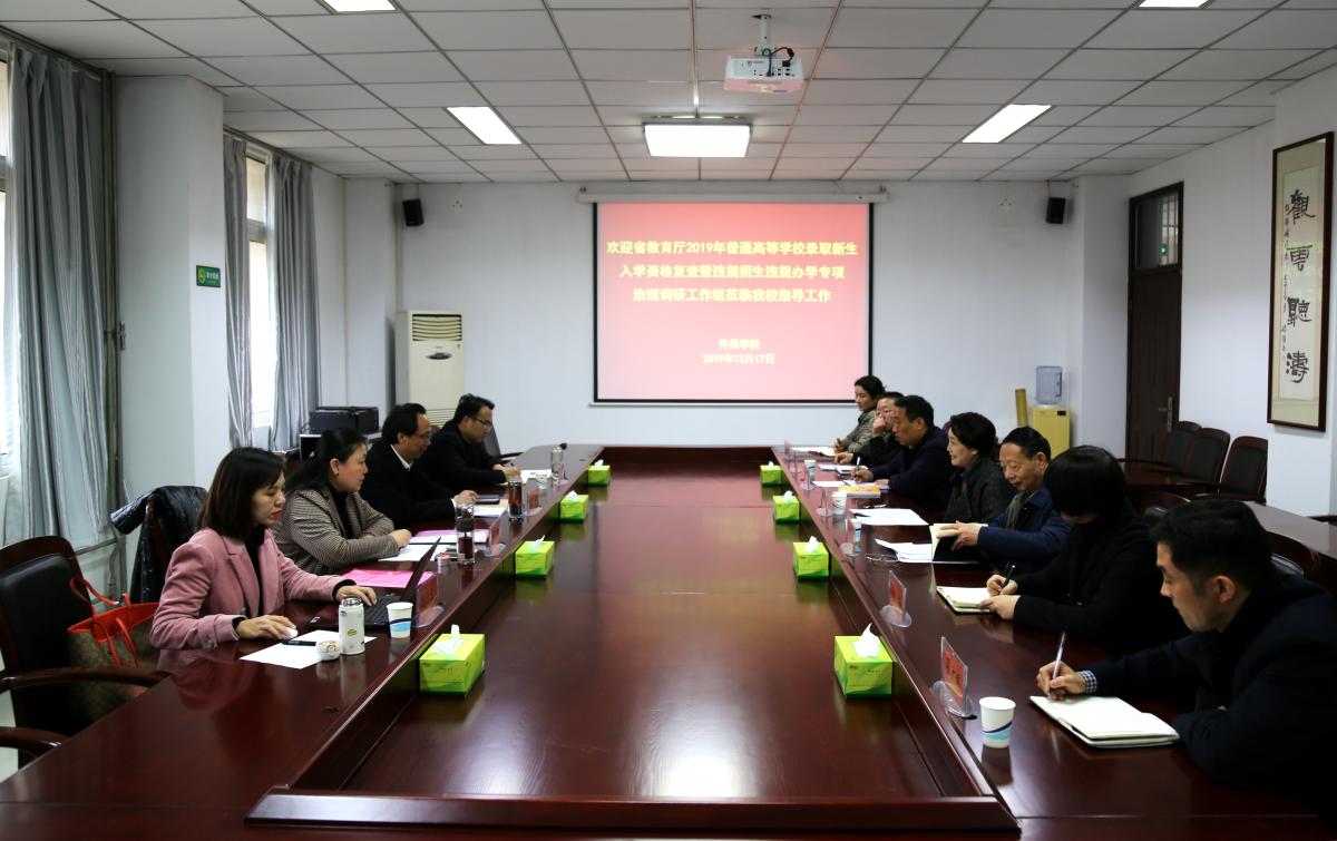12月17日上午,以郑州师范学院副院长盛宾任组长的河南省普通高校2019年录取新生入学资格复查暨违规招生违规办学专项治理调研组到云顶国际平台网址检查调研相关工作。学校在办公楼第一会议室举行了专题汇报会,副院长黄怡俐及教务处、校纪委、招生办公室、学生处等部门主要负责人和部分二级学院学工负责人参加了会议。会议由教务处处长周颖杰主持。