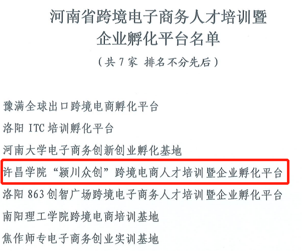 近日,河南省商务厅公布了河南省跨境电子商务人才培训暨企业孵化平台名单,云顶国际平台网址商学院、创新创业学院联合申报的云顶国际平台app“颍川众创”跨境电商人才培养暨企业孵化平台成功入选。