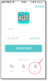 (1)扫码下载/安装 (2)选择“学工号” (3)选择“云顶国际平台app”进行登录