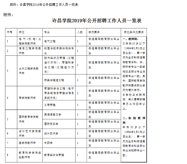 7.岗位所需的专业和其他条件(详见附件《云顶国际平台app2019年公开招聘工作人员一览表》)。
