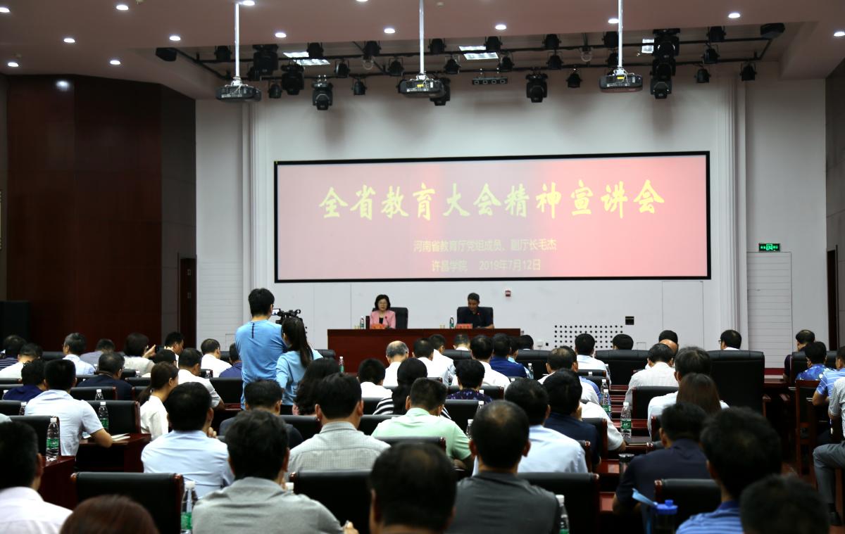 7月12日,许昌、漯河片区全省教育大会精神宣讲会在云顶国际平台网址学术会议中心召开。省教育厅党组成员、副厅长毛杰作专题宣讲报告,报告会由院长岳修峰主持。