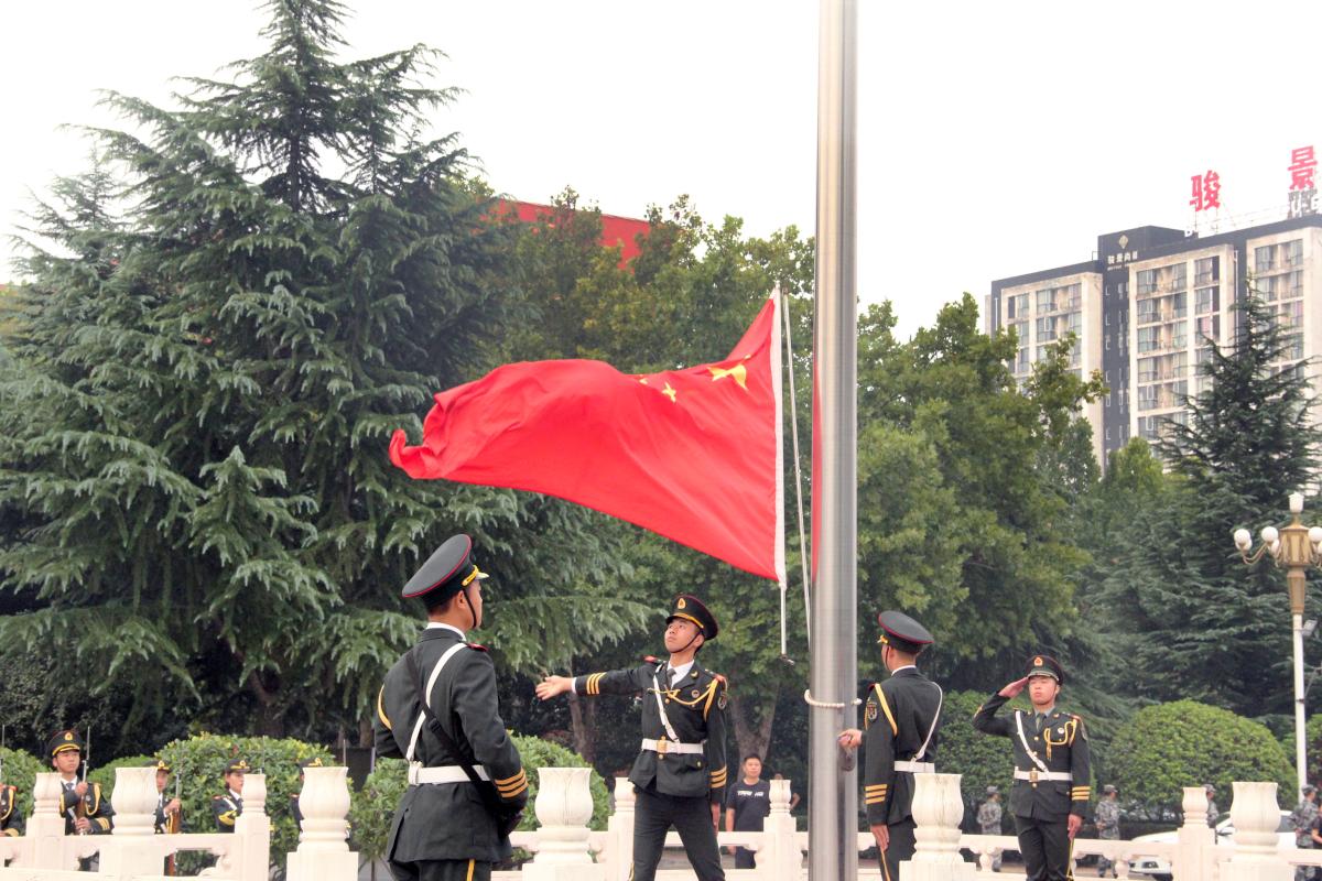 6时许,来自各二级学院的学生代表到达指定地点并列队完毕。6时40分,国旗护卫队队员护送着鲜艳的五星红旗,迈着整齐矫健的步伐走上国旗台。伴随着庄严雄壮的国歌,鲜艳的五星红旗在全体师生的注目中迎着初升的太阳冉冉升起。师生们庄严肃立,向国旗行注目礼,齐声高唱国歌,传递着对祖国的热爱和新学期积极进取的精神状态。