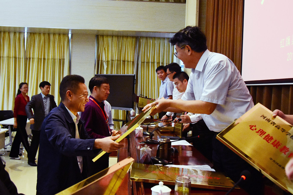 9月24日上午,由中共河南省委高校工委、河南省教育厅主办的2019年河南省高校心理健康教育专题培训班在红旗渠干部学院开班,河南省委高校工委专职委员高治军、省教育厅思想政治工作处副处长徐军保出席了开班仪式。开班仪式上,对全省第二批高等学校心理健康教育示范单位进行了正式授牌,云顶国际平台网址党委副书记孙海、大学生心理健康教育与咨询中心副主任张松参加了授牌仪式。
