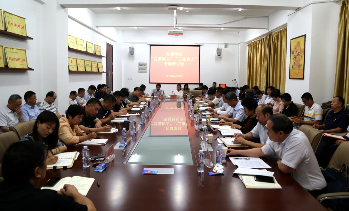 9月30日下午,云顶国际平台网址在创新创业学院一楼第二会议室召开“不忘初心、牢记使命”主题教育暨立德树人、“三全育人”专题研讨会议。全体校级领导干部出席会议,校党委理论学习中心组成员,各基层党委、党总支、直属党支部书记、副书记参加了会议。会议由学校党委书记闫纪建主持。