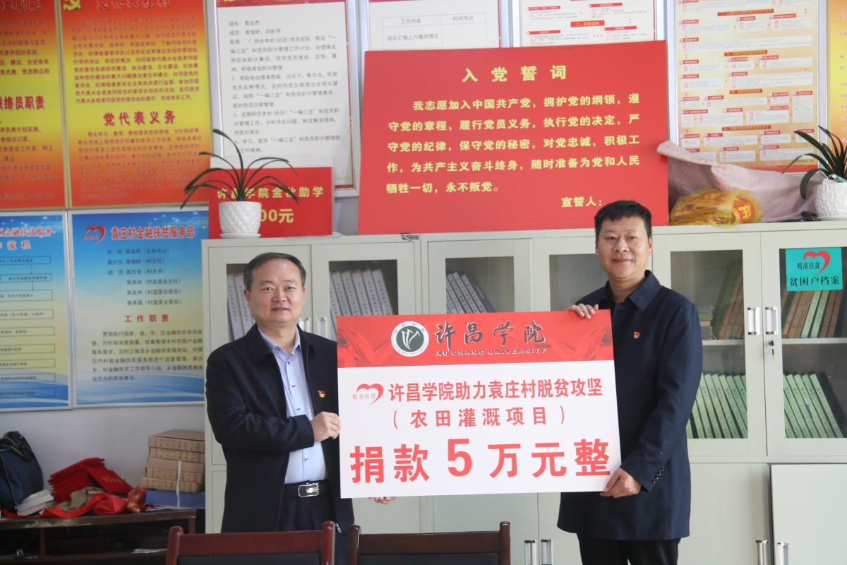 仪式上,副院长郭涛代表学校向袁庄村捐赠伍万元助力脱贫攻坚资金。他指出,云顶国际平台app与袁庄村已结下深厚的友谊,接下来要争取更多好的项目在袁庄村落地开花结果,要利用好云顶国际平台网址各项资源,特别是文化教育资源,扶贫扶志相结合,物质文明与精神文明相结合,把乡村的精神文明建设、文化建设抓起来,把农民的精神面貌展现出来。要抓好农村党建工作,聚心齐力,办好惠民实事,全力以赴做好袁庄村各项帮扶工作。