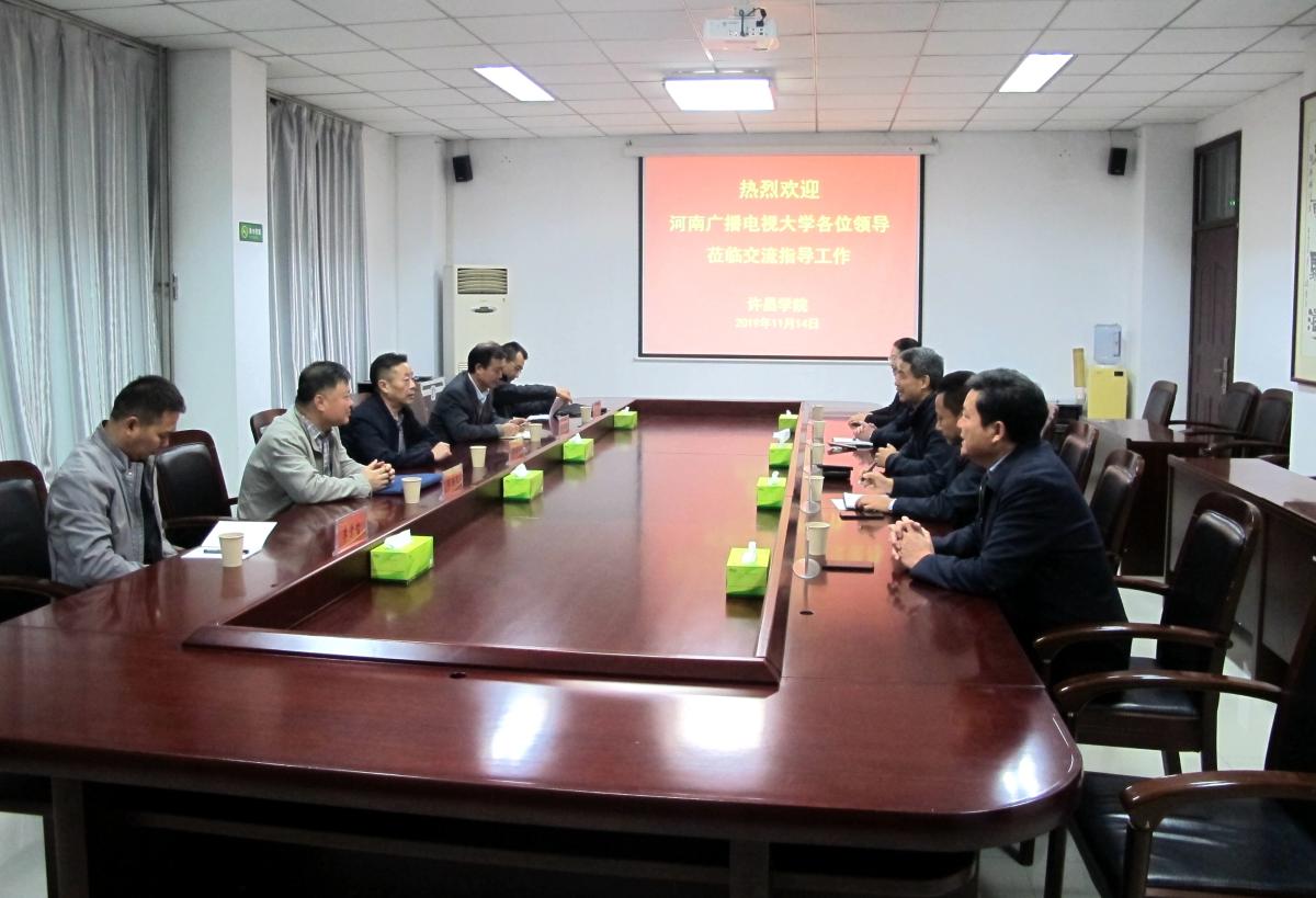 11月14日下午,河南广播电视大学副校长周海兴、李小明、王海天及学校党政办公室、党委宣传部负责同志一行5人到云顶国际平台网址交流考察工作。院长岳修峰会见了河南广播电视大学客人,双方进行了座谈交流,党委副书记孙海、副院长郭涛、工会主席高金星出席座谈会。