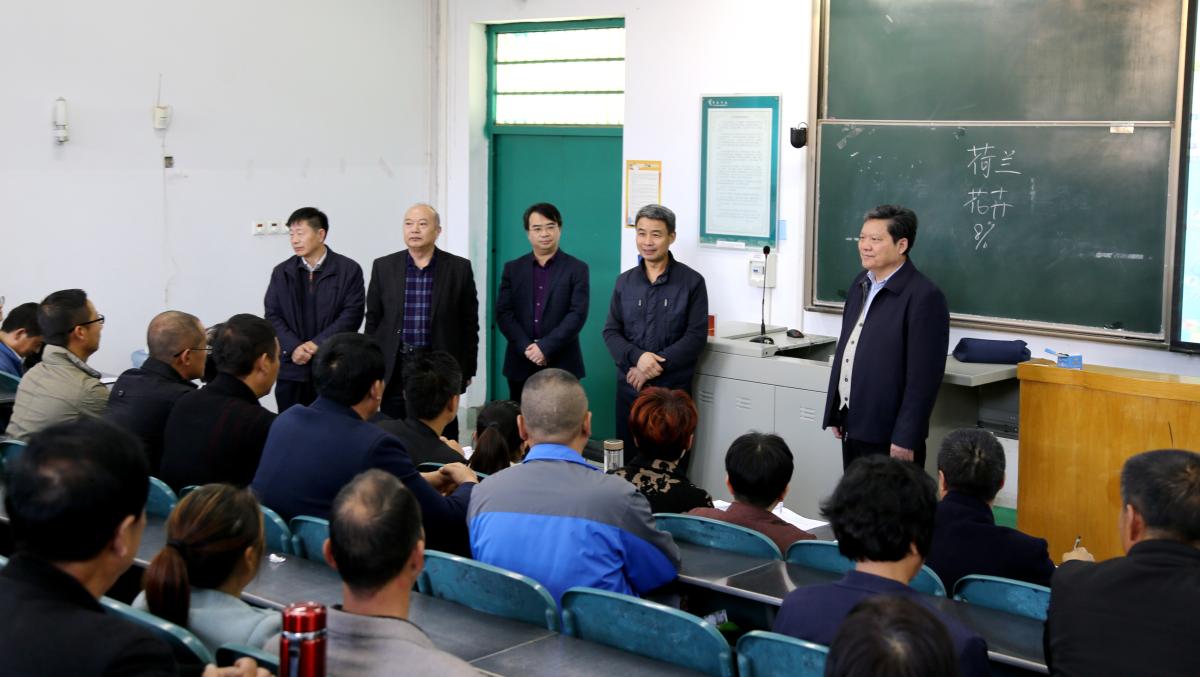 11月14日下午,院长岳修峰、工会主席高金星到A4教学楼看望慰问正在云顶国际平台网址参加“河南省新型职业农民培训”的内乡县学员,党政办公室、校地合作办公室、继续教育学院相关负责人陪同。