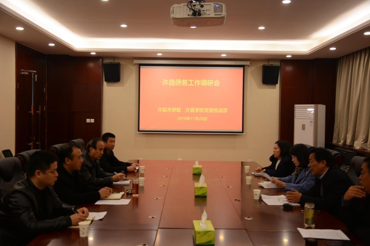 11月19日下午,许昌市侨联党组书记、主席阎玉朝一行5人来云顶国际平台网址调研交流。云顶国际平台网址党委统战部、创新创业学院等单位负责人参加座谈。