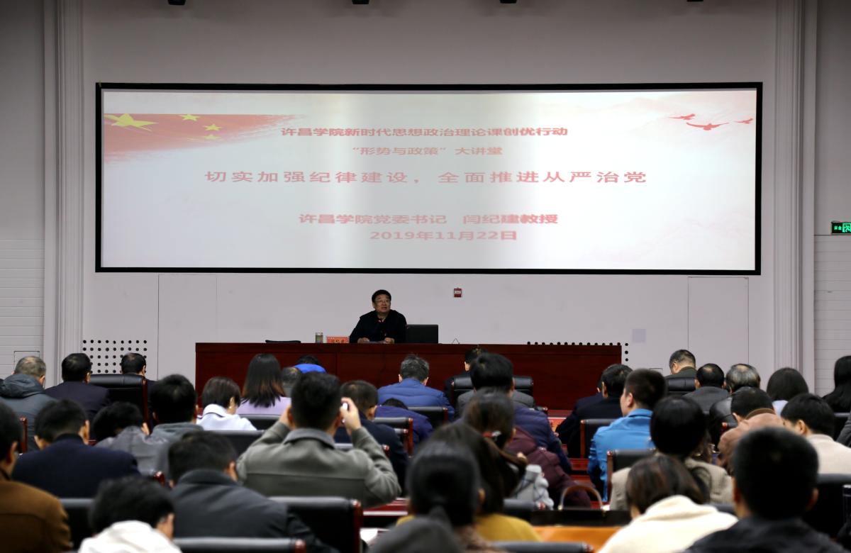 11月22日,党委书记闫纪建在创新创业学院学术会议中心,以《切实加强纪律建设,全面推进从严治党》为题,为基层党委、党总支、直属党支部书记、副书记,教工党支部书记,学生党支部书记以及学生党员代表讲授了专题党课。