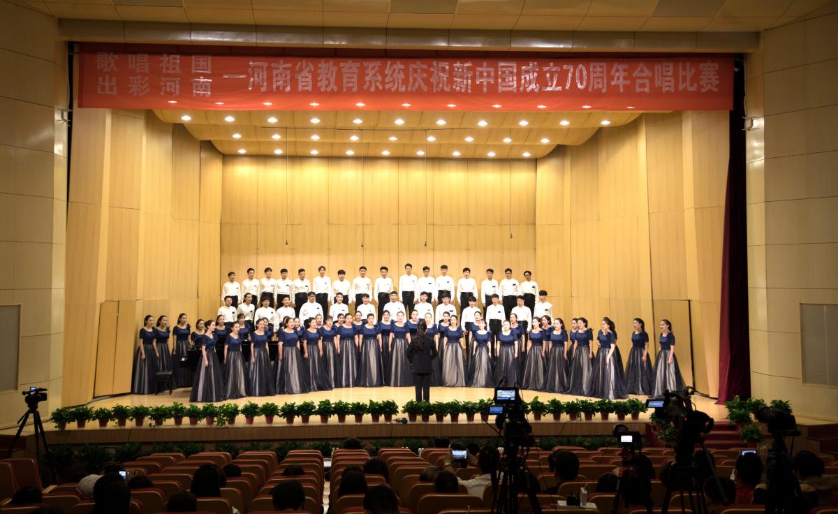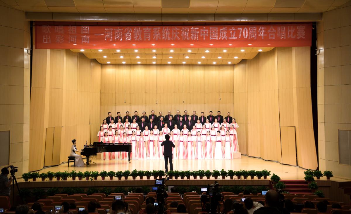 近日,河南省教育厅公布了全省教育系统庆祝新中国成立70周年系列美育活动评奖结果(教体卫艺〔2019〕796号),云顶国际平台网址的教师合唱团和学生合唱团在“歌唱祖国 出彩河南”合唱比赛中双双荣获教师组和大学生组的一等奖,云顶国际平台网址的卢晓红、李岩、艾青、代礼胜、刘璐、董梦伟等老师和同学在“翰墨绘盛世 丹青颂祖国”书画摄影作品评选中获得一二三等奖24个,云顶国际平台网址同时被授予活动“优秀组织奖”。