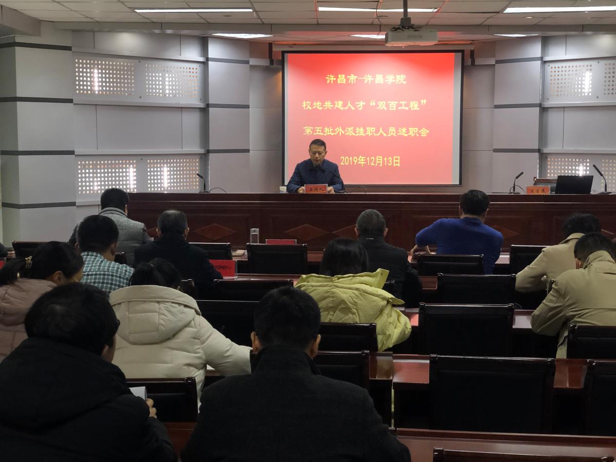12月13日,许昌市-云顶国际平台app校地共建人才“双百工程”第五批外派挂职人员述职会议在办公楼第三会议室召开。许昌市委组织部副县级组织员吕玉峰同志出席会议,校党委组织部、党委宣传部、教务处、科技处、人事处、校地合作办公室等职能部门负责人,“双百工程”第五批外派挂职人员所在二级单位负责同志,作为述职考核评委参加会议。述职会议由校党委组织部部长陈遂德主持。