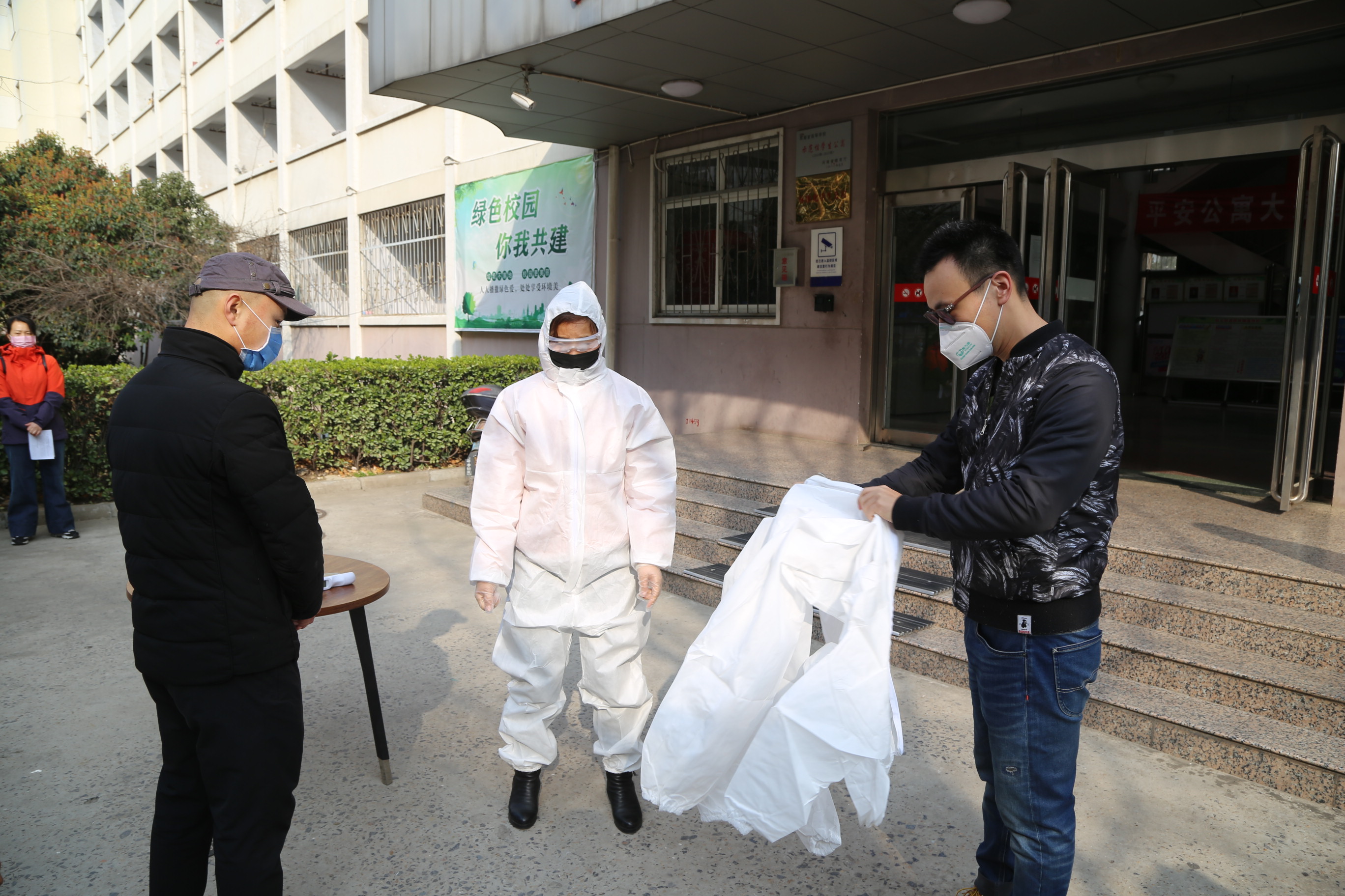 此次演练科目为模拟校内某体温检测点发现一名发热、乏力、干咳、胸闷等症状的学生,疑似新冠肺炎患者,随即启动应急预案后的响应程序、现场指挥调度、疫点的消毒处理过程、现场流行病学调查、个人防护程序(着装、防护)等。