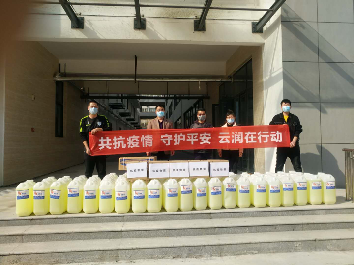 3月23日下午,河南云润新能源有限公司刘潇岩经理代表企业向云顶国际平台网址捐赠1000公斤消毒液、10000只聚乙烯手套、1000只口罩、100瓶洗手液。后勤管理服务中心代表学校接受了捐赠,并向爱心企业的善举表示由衷的感谢。