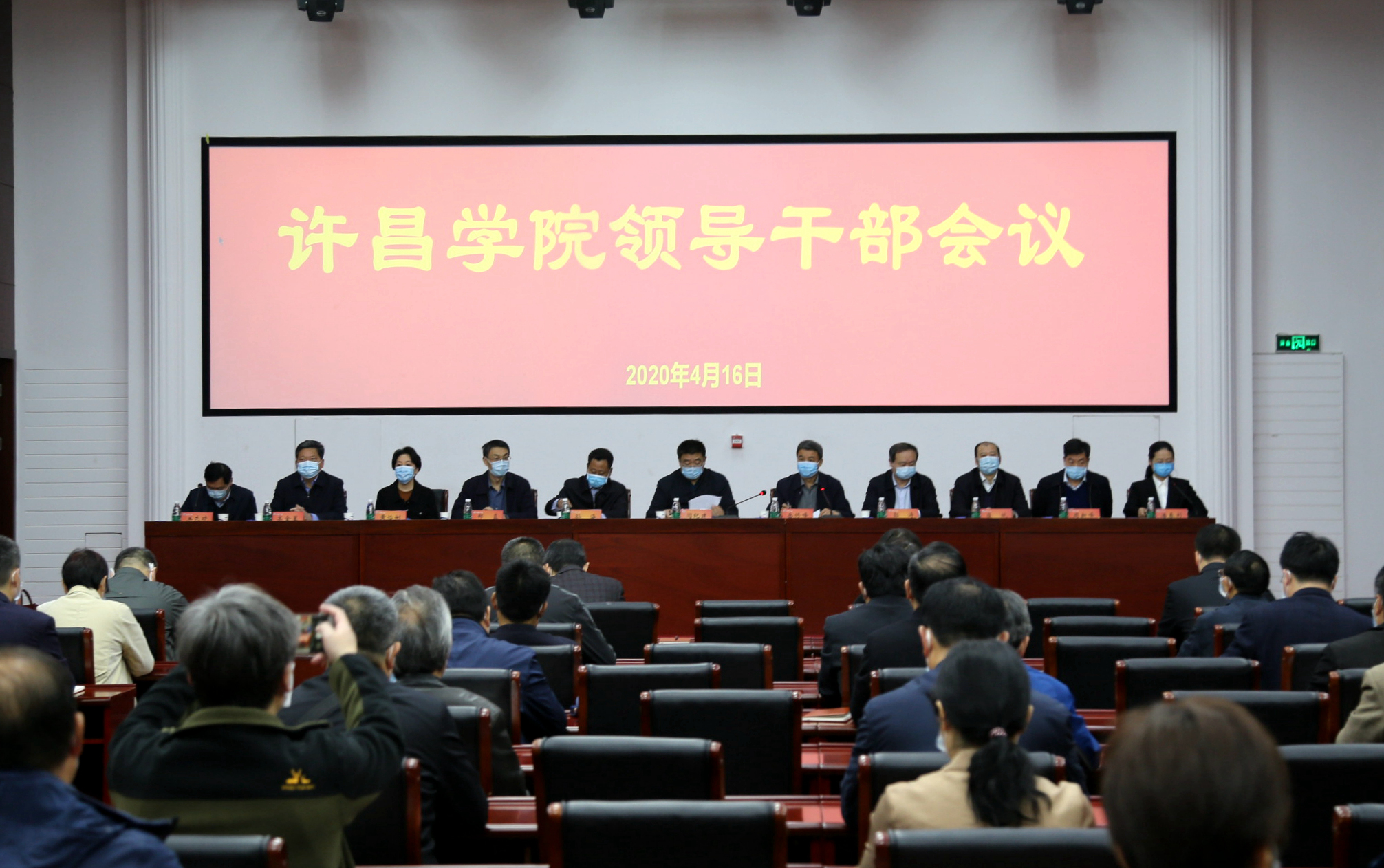 4月16日上午,学校在学术交流中心召开领导干部会议,通报校级领导班子调整情况。全体校级领导出席会议,全校中层正职和主持工作的副职领导干部参加会议,会议由院长岳修峰主持。
