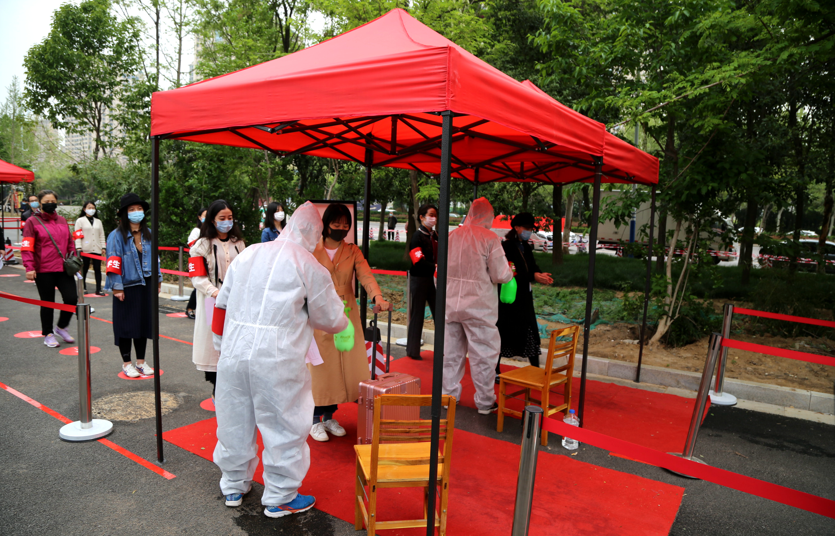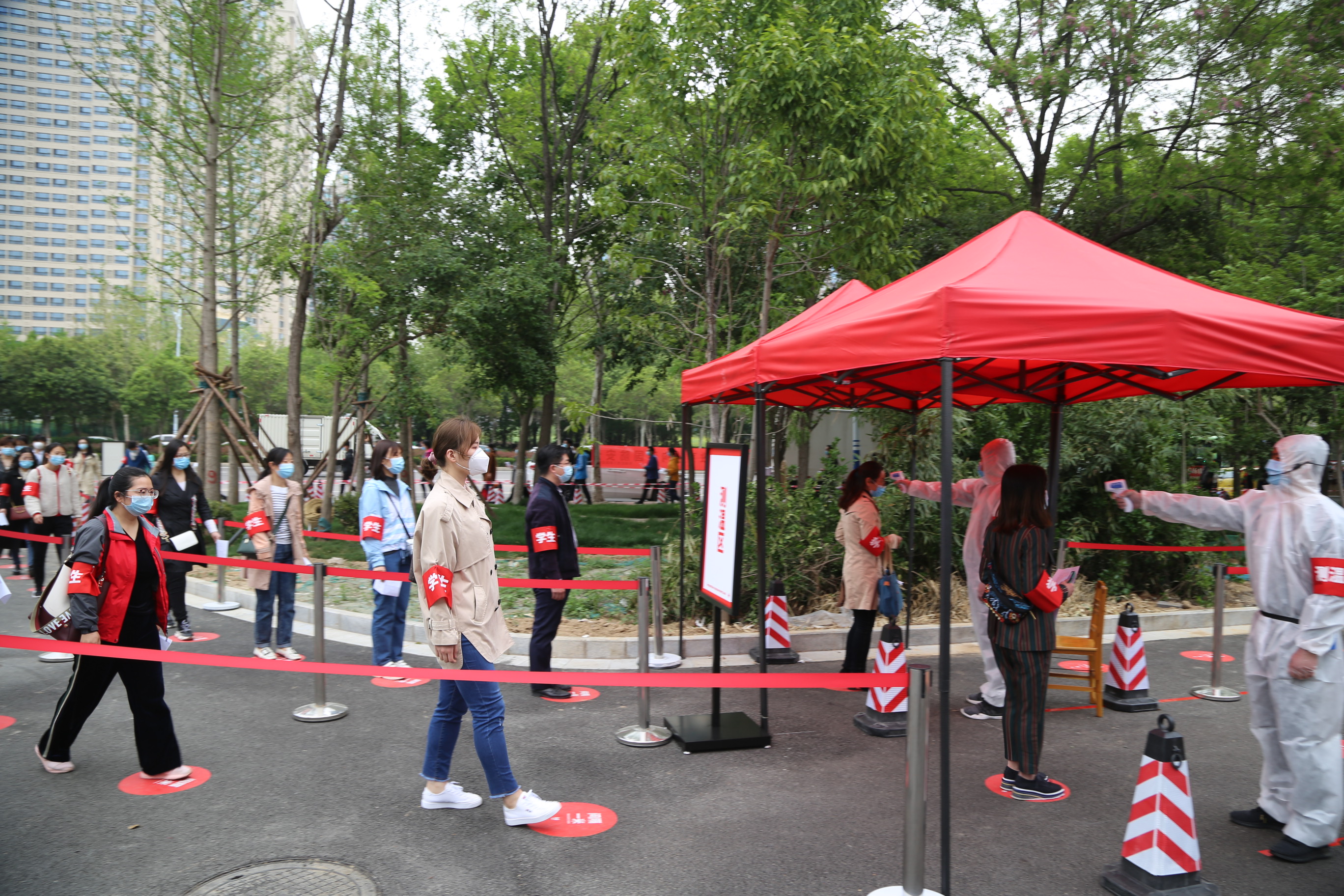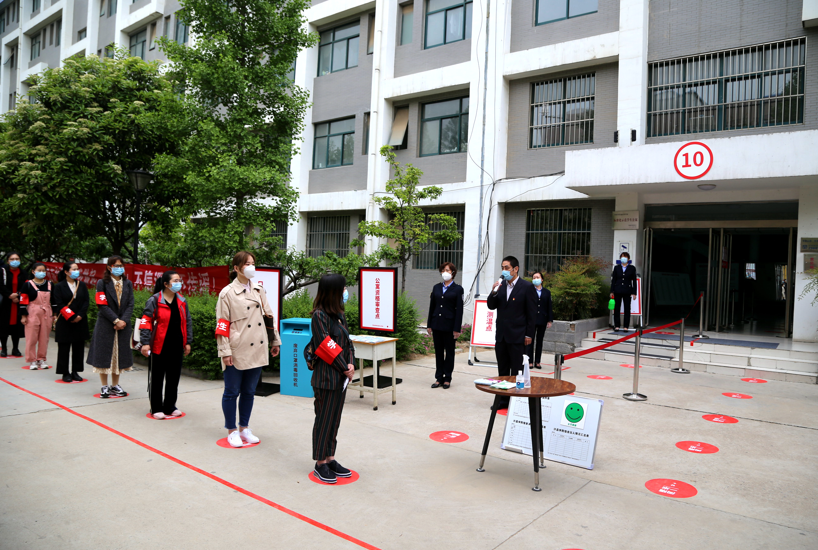 演练中,由云顶国际平台网址辅导员老师充当“学生”开展疫情防控应急综合实战演练,模拟师生正常校园生活流程,进一步细化防控规范和操作流程。在北大门进行了学生返校报到和疫情应急处置演练,在静庐10号楼开展了学生公寓疫情防控演练,在文科综合楼进行了学生错峰上课演练,在满庭芳餐厅开展了学生错峰就餐演练,并针对可能出现的各类紧急场景,相关人员和“师生们”实战演练了错峰报到、健康管理、清洁消毒、紧急疏散、迅速隔离、及时送医等具体防控措施。各参与人员熟悉应急处置具体流程,各小组紧密配合,迅速反应,规范操作,确保出现突发事件能得到及时、有效的处理。