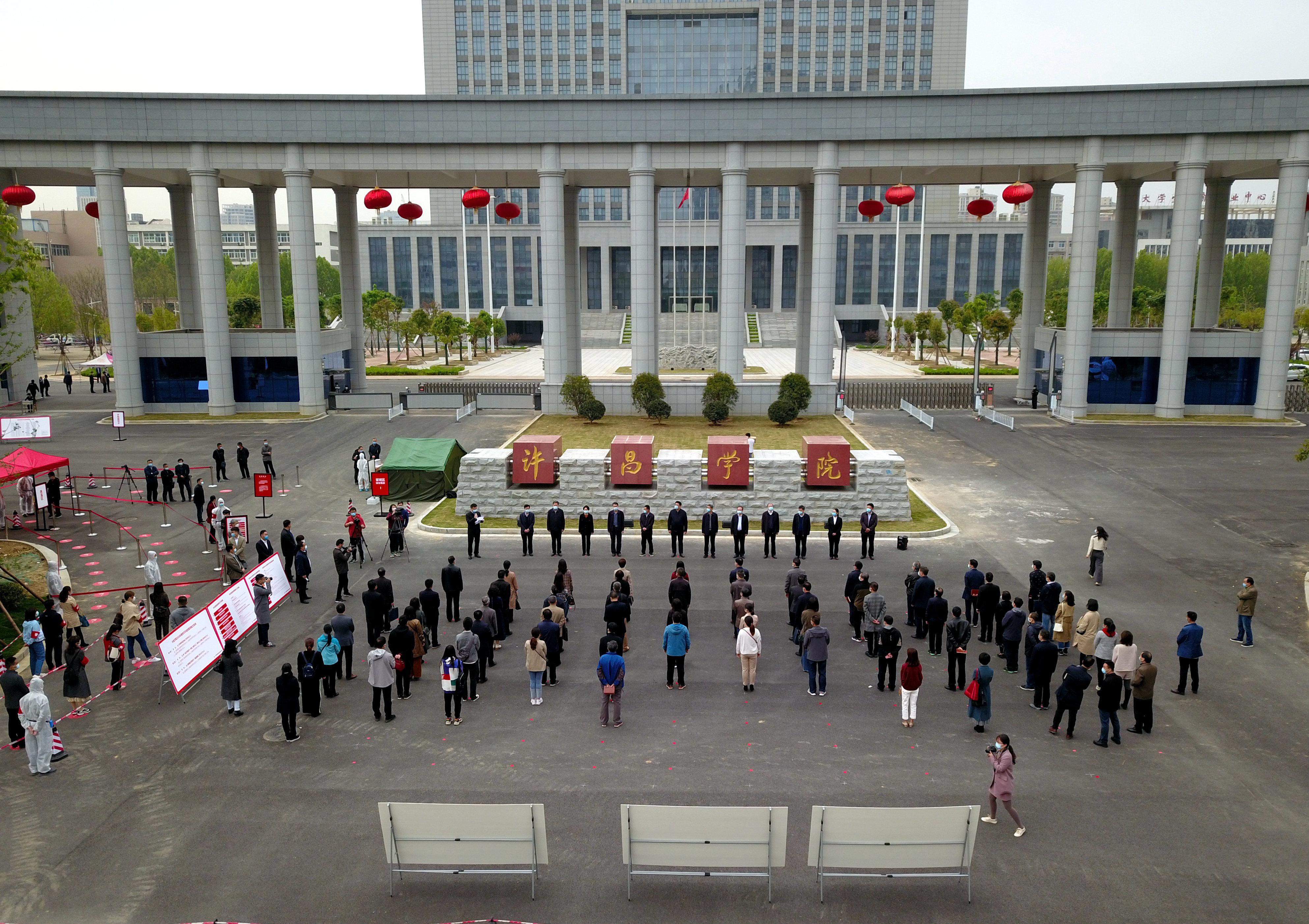 为进一步贯彻落实上级部门和学校疫情防控相关决策部署,科学精准做好学校新冠肺炎疫情防控工作,确保2020年春季开学后全体师生身体健康和生命安全,4月16日,云顶国际平台网址举行开学疫情防控实操演练。全体校级领导、新冠肺炎疫情防控指挥部各工作专班负责人、许昌市东城区管委会、东城区卫健局等有关领导到现场观摩指导,学校相关部门负责同志、各二级学院党总支书记、副书记、全体专兼职辅导员参加实操演练。