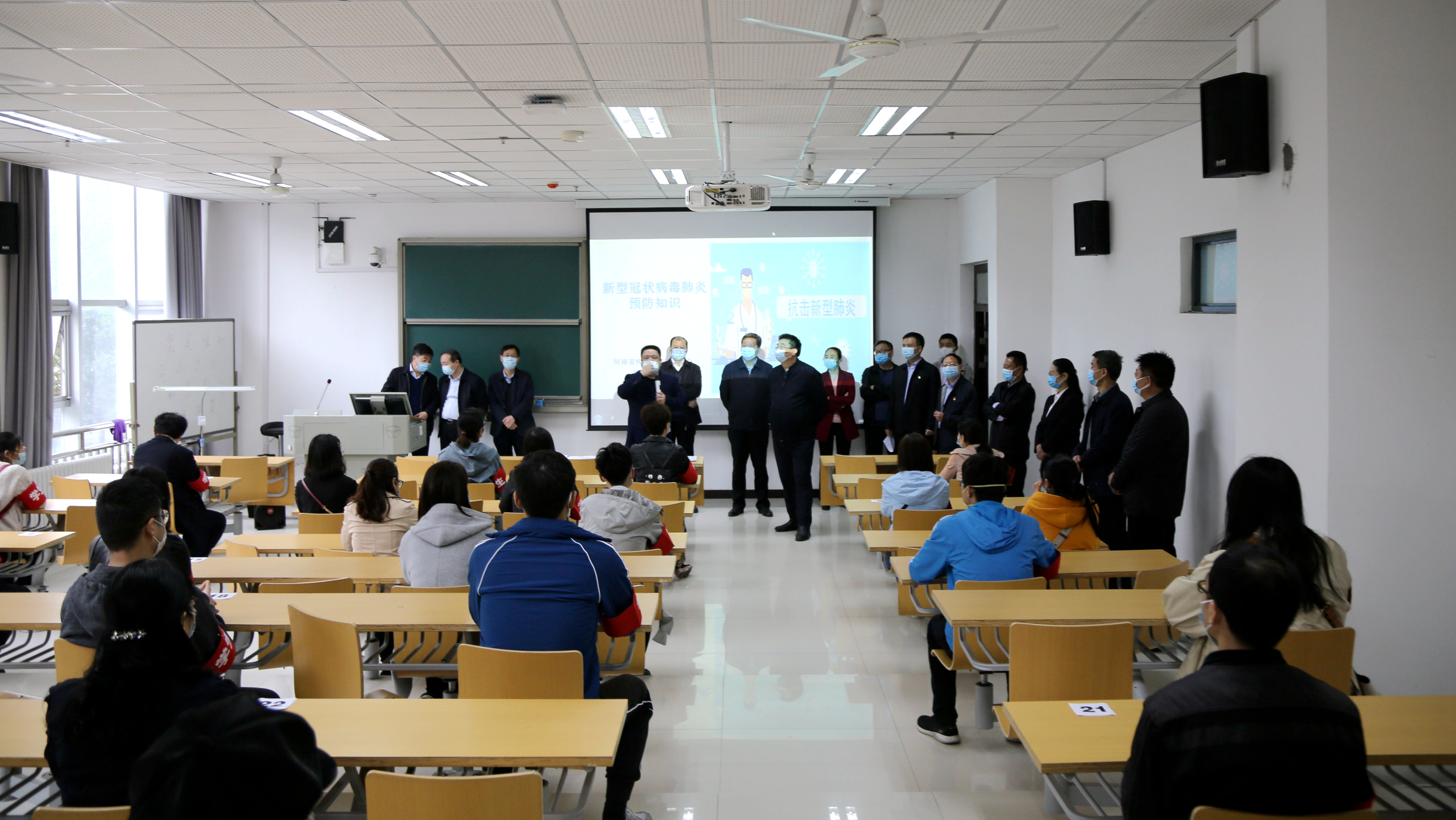 党委书记闫纪建、院长岳修峰要求各部门、各单位要认清当前疫情防控形势的复杂性、严峻性、持续性,进一步织密织牢疫情防控网络,巩固学校防控工作积极向好的态势;要各司其职、相互配合、信息共享、加强管理,从严从实从细落实防控措施,扎实做好防疫物资储备,牢牢守住学校和学生安全底线;要充分发挥宣传和舆论作用,引导师生科学防控,把开学前的准备工作做得更加科学规范,坚决把疫情挡在校门之外,切实保障师生安全。